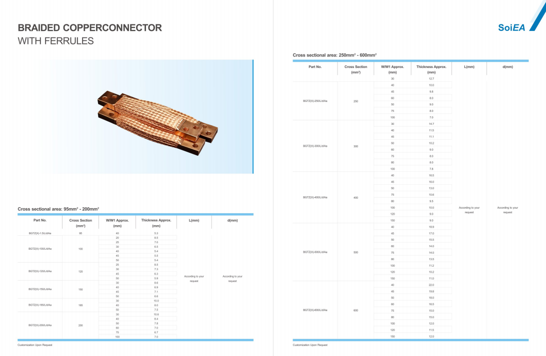 BRAIDED COPPERCONNECTORWITH FERRULES