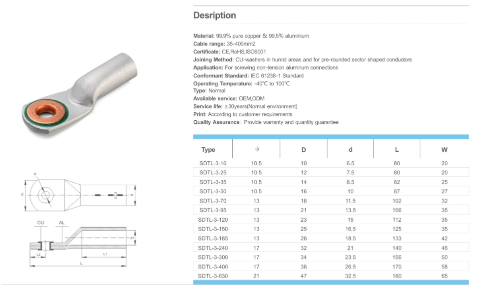 SDTL-3/Bimetallic Cable Lugs
